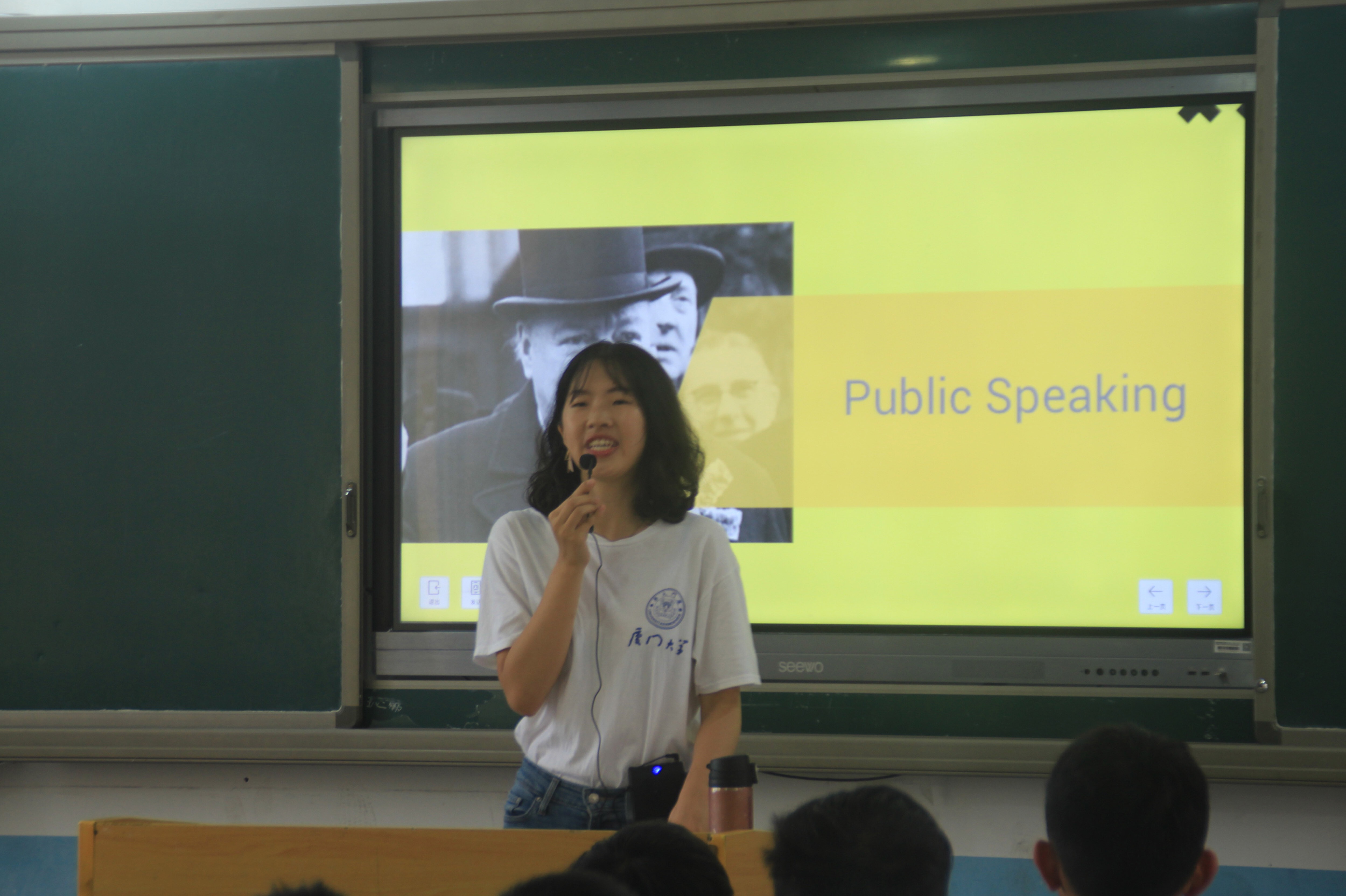 A member of the social practice group teaches the course of “European and American Culture and Tourism” for the students.