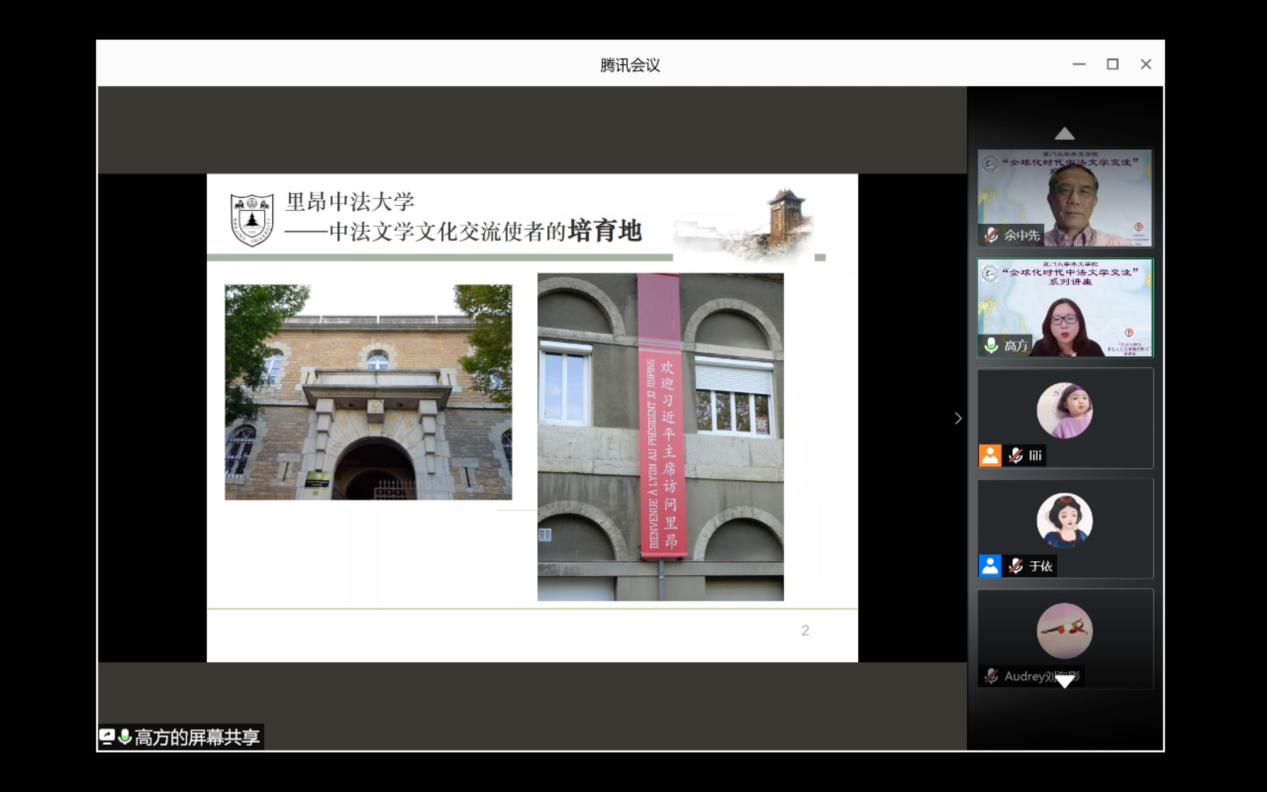 2020年10月22日晚19:00,yl8cc永利官网“全球化时代中法人文交流模式新探”课题组推出的“全球化时代中法文学交流”系列讲座第四讲,由南京大学法语系教授,博士生导师高方教授开讲,讲座题为《里昂中法大学译者群体与中法文学交流》。本次讲座由yl8cc永利官网讲座教授余中先教授主持,在腾讯会议进行,同时通过B站进行全球直播。