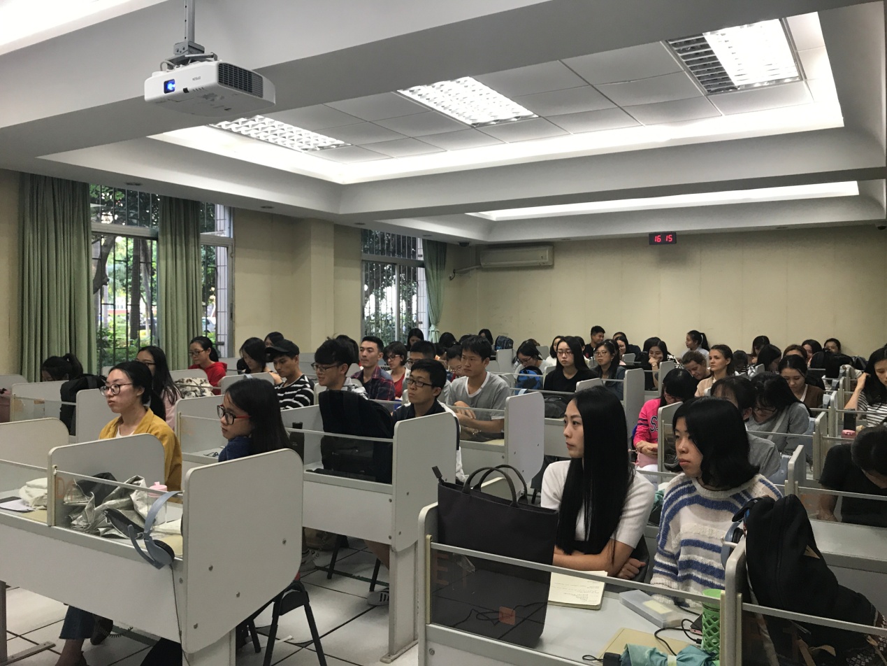 讲座中,王教授还和同学们一起探讨了英语的国际化,详细解释了各类英语的定义,认为现在英语在全球化过程中被非英语国家本土化已是大势所趋。
