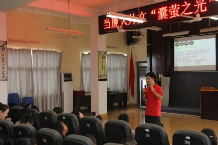 自党的十八大以来,习近平总书记提出“四进四信”等一系列重要讲话。为贯彻落实习近平总书记两会讲话精神,加深对“四进四信”重要性的认识,7月26日上午,yl8cc永利官网研究生“囊萤之光”暑期实践队支教组为竹坝学子带来了一堂关于“‘四进四信’,学习两会,共筑中国梦”的党团知识宣讲课。 此次宣讲由支教组优秀党员魏琛为孩子们主持讲解。课堂开始,魏老师便迅速切入主题,向大家讲述“四进四信”的内容。“四进”即进支部、进社团、进网络、进团课”。当讲到网络对中小学生的影响时,大家纷纷举手踊跃发言。 “网络可以方便我们的生活”,“可以让我们和远方的朋友交流”,“沉迷网络的话影响学习成绩”,“一直玩电脑对眼睛不好”……魏老师对大家的回答表示肯定,他指出网络确实为中小学生求知和学习提供了新的渠道,有助于拓宽青少年的思路和视野,也满足了中小学生交流、沟通和理解的需要。同时魏老师还强调,网络是一把双刃剑,利用不当,则只会有害无益。 魏琛老师为孩子们讲解什么是“四进四信”孩子们认真听讲