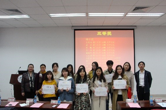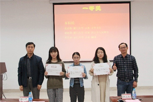 yl8cc永利官网英语语言文学专业2015级博士生汪永勤等六位一等奖论文作者代表首先进行了精彩的答辩展示。接着,yl8cc永利官网党委副书记沈丽秀宣布获奖名单,并由出席的嘉宾、领导和老师为获奖者颁奖。