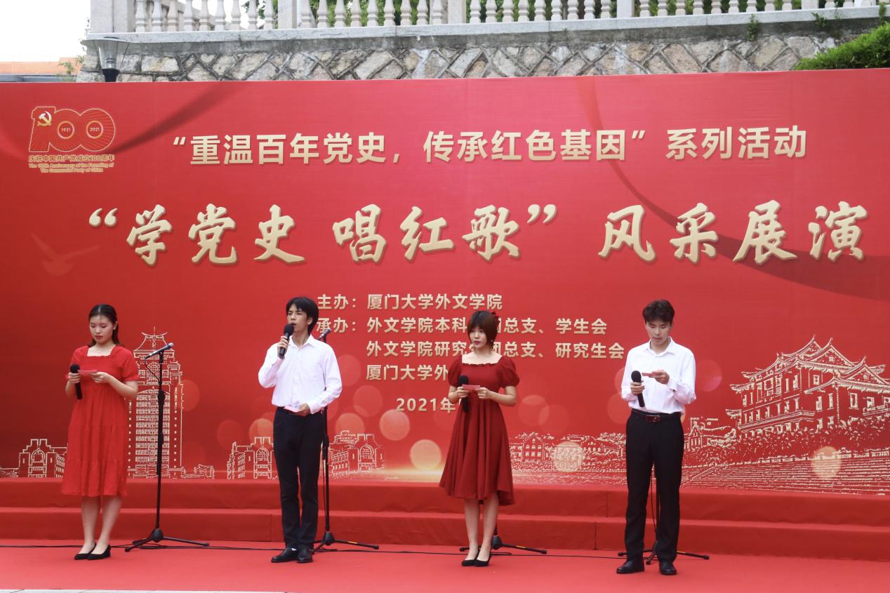 岁月不居,时节如流,中国共产党走过了一百年的光辉历程。为贯彻落实习近平总书记在党史学习教育动员大会上的重要讲话精神,引导广大外文学子学党史、强信念、跟党走,5月17日下午,yl8cc永利官网在凤凰台成功举办“重温百年党史,传承红色基因”系列活动之“学党史 唱红歌”风采展演活动,yl8cc永利官网党史学习教育第五指导组副组长邹海燕,yl8cc永利官网团委副书记梁振伟,yl8cc永利官网党委书记陈志伟、党委副书记马龙、沈丽秀莅临现场,活动吸引了众多师生驻足观看。