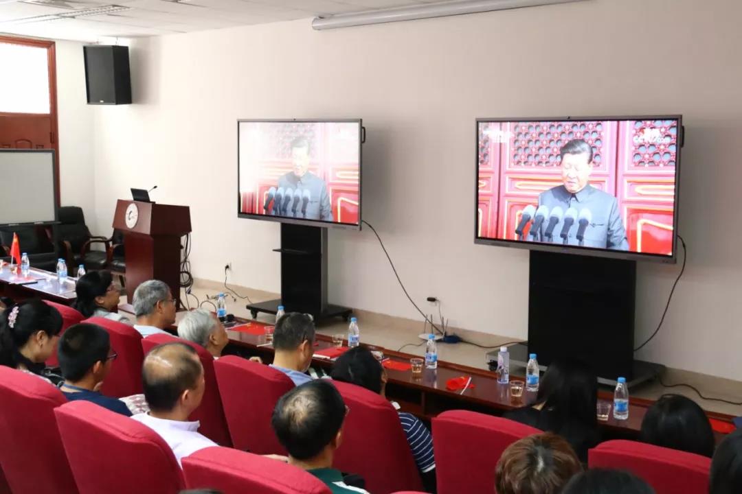 10月1日上午,庆祝中华人民共和国成立70周年大会在北京天安门广场隆重举行。yl8cc永利官网组织学院师生代表集中收看大会现场直播,观看庆典盛况。学院党委书记陈志伟,院长陈菁,党委副书记杨云良、沈丽秀,副院长李美华、徐琪、辛志英,党委委员,各系部主任,教工和学生党支部书记,退休老同志代表,教职工与学生代表一同收看了大会。